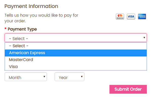 Easily enter your credit card information with our responsive shopping cart.